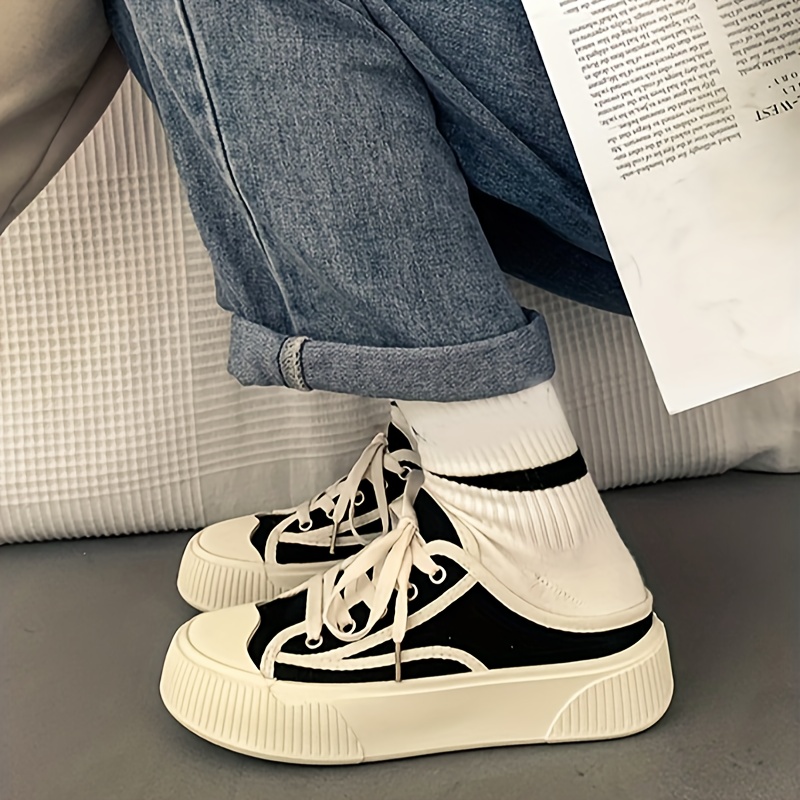 Women's Backless Canvas Sneakers, All-Match Round Toe Slip On Skate Shoes, Casual Platform Slide Sneakers