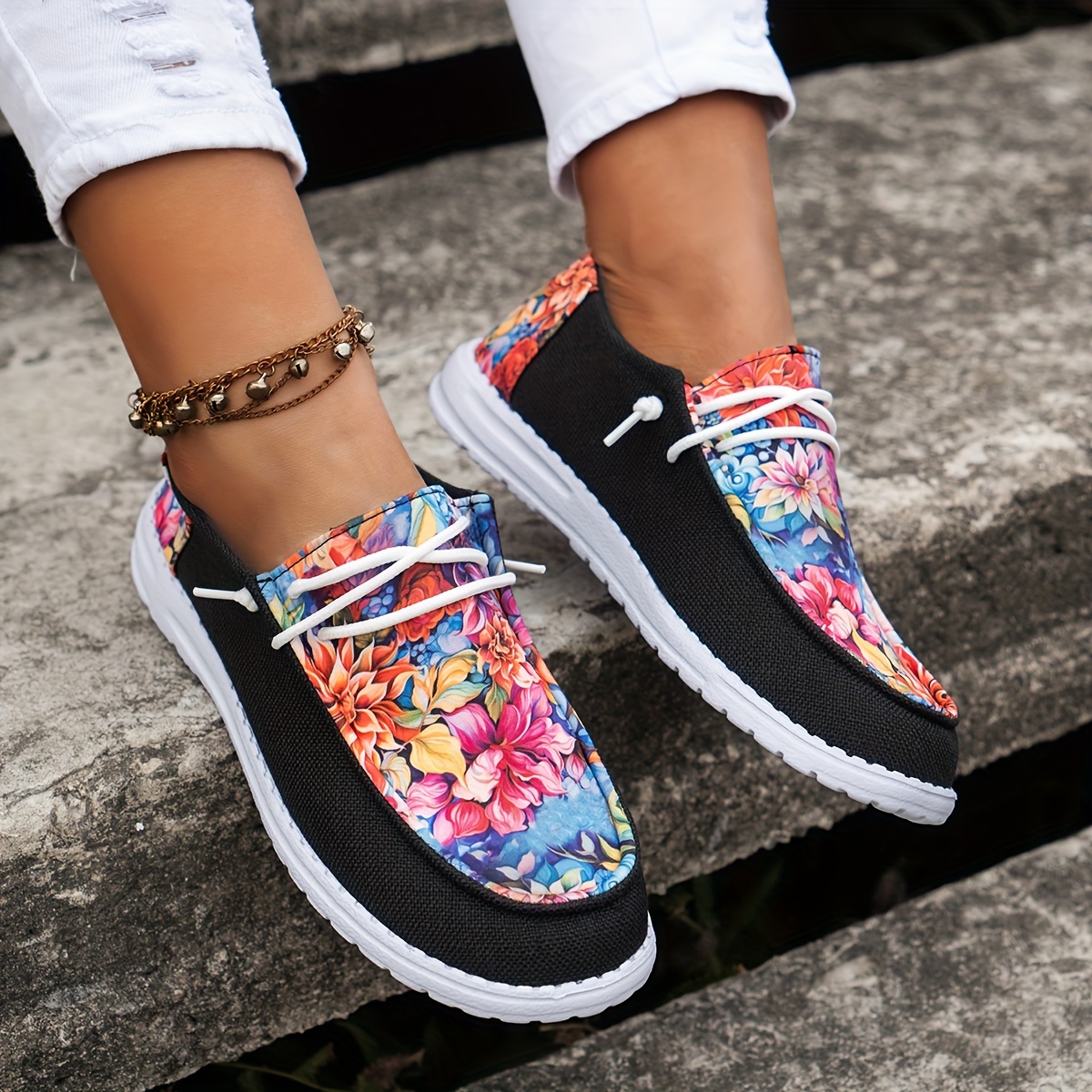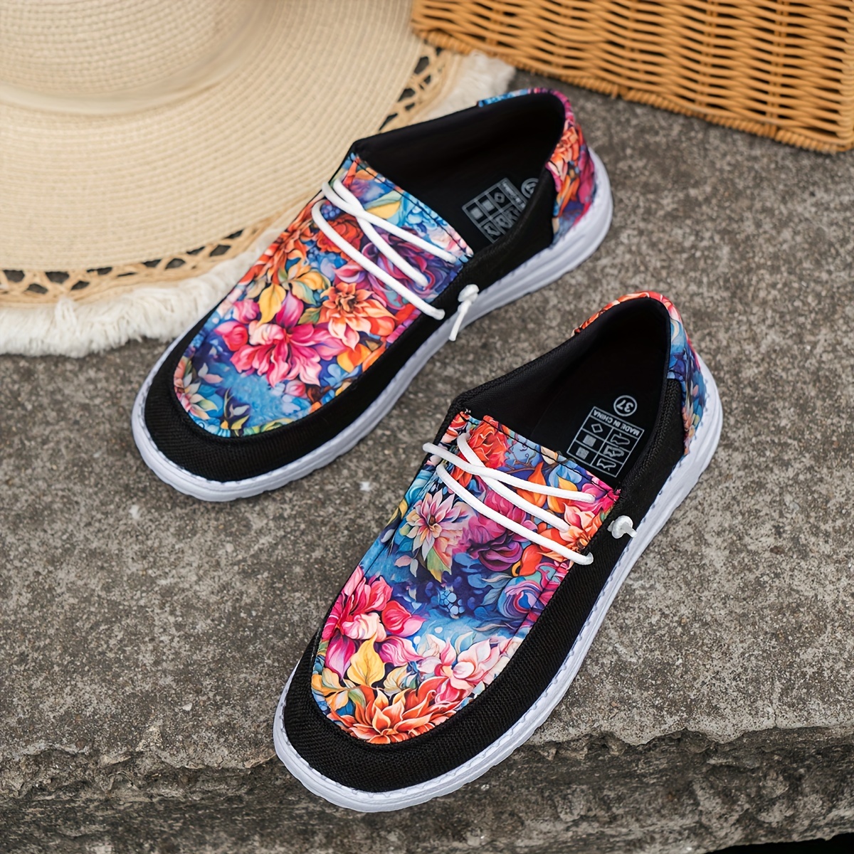 Women's Flower Pattern Canvas Shoes, Casual Lace Up Outdoor Shoes, Lightweight Low Top Sneakers
