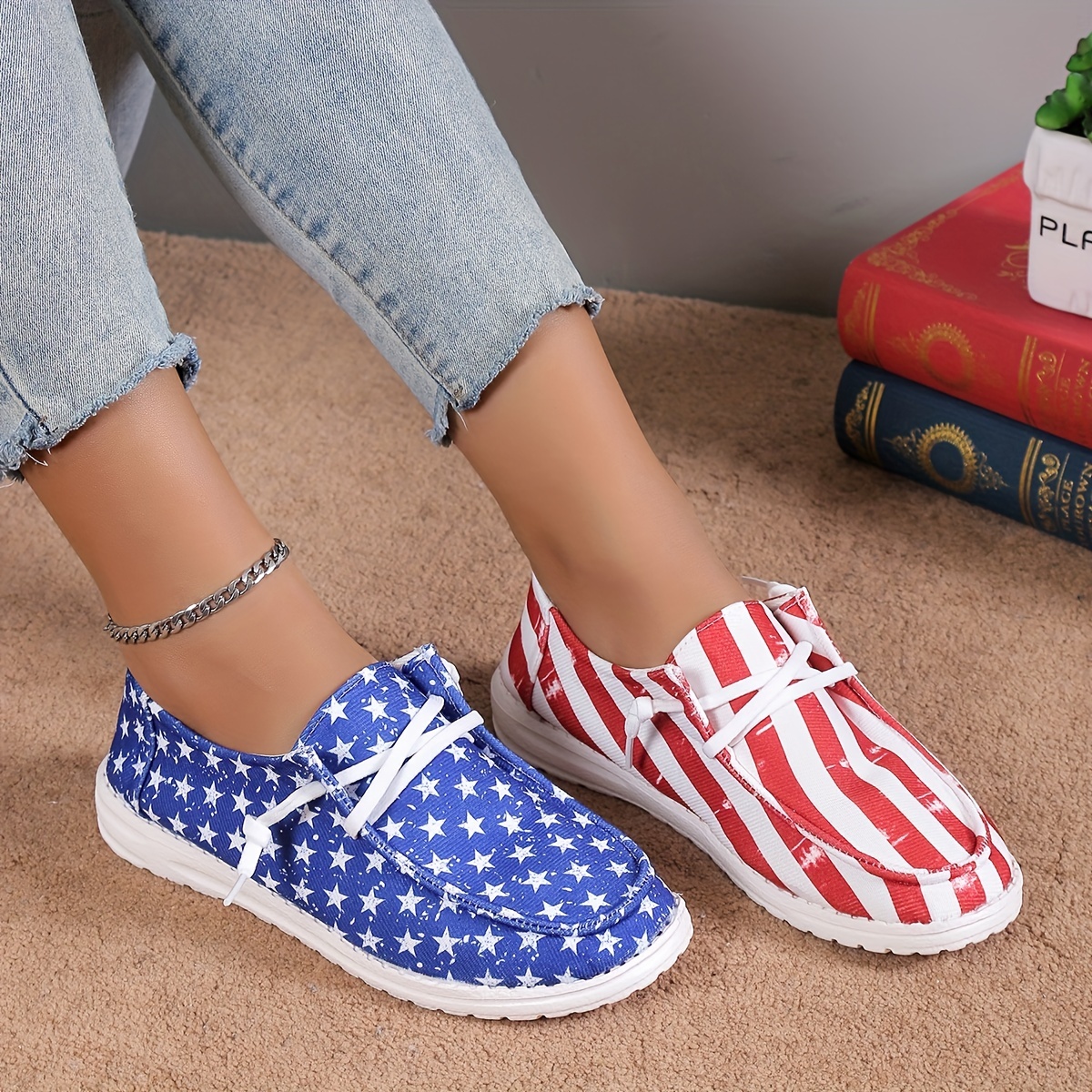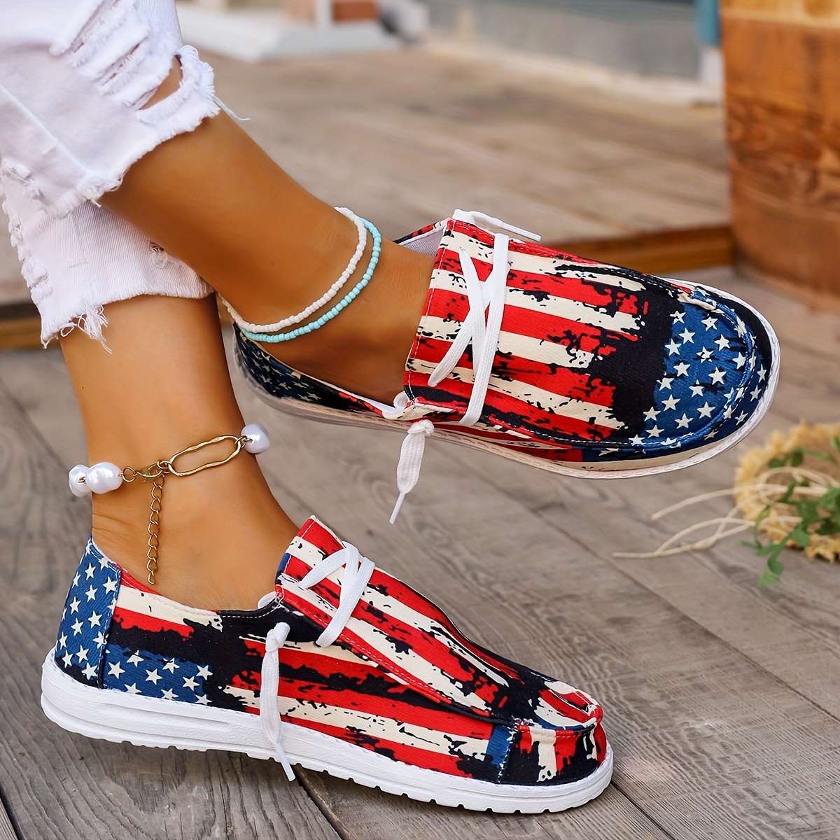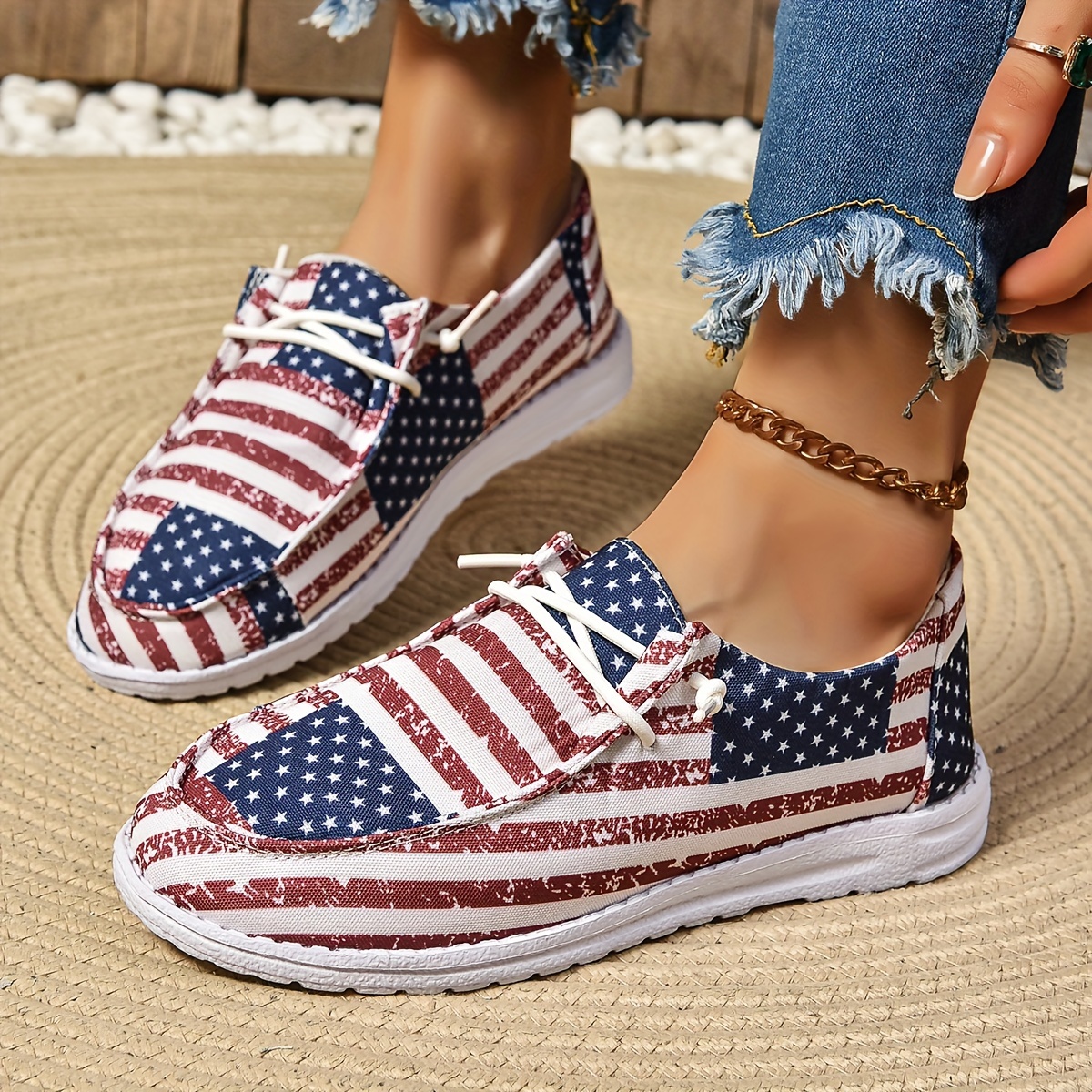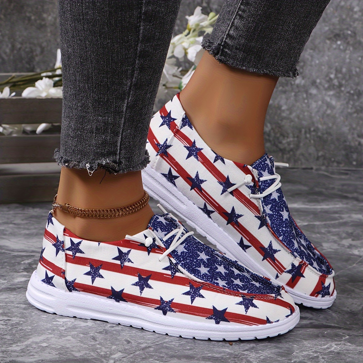 Women's Star & Striped Print Sneakers, Lightweight Lace Up Canvas Shoes, Casual The 4th Of July Shoes