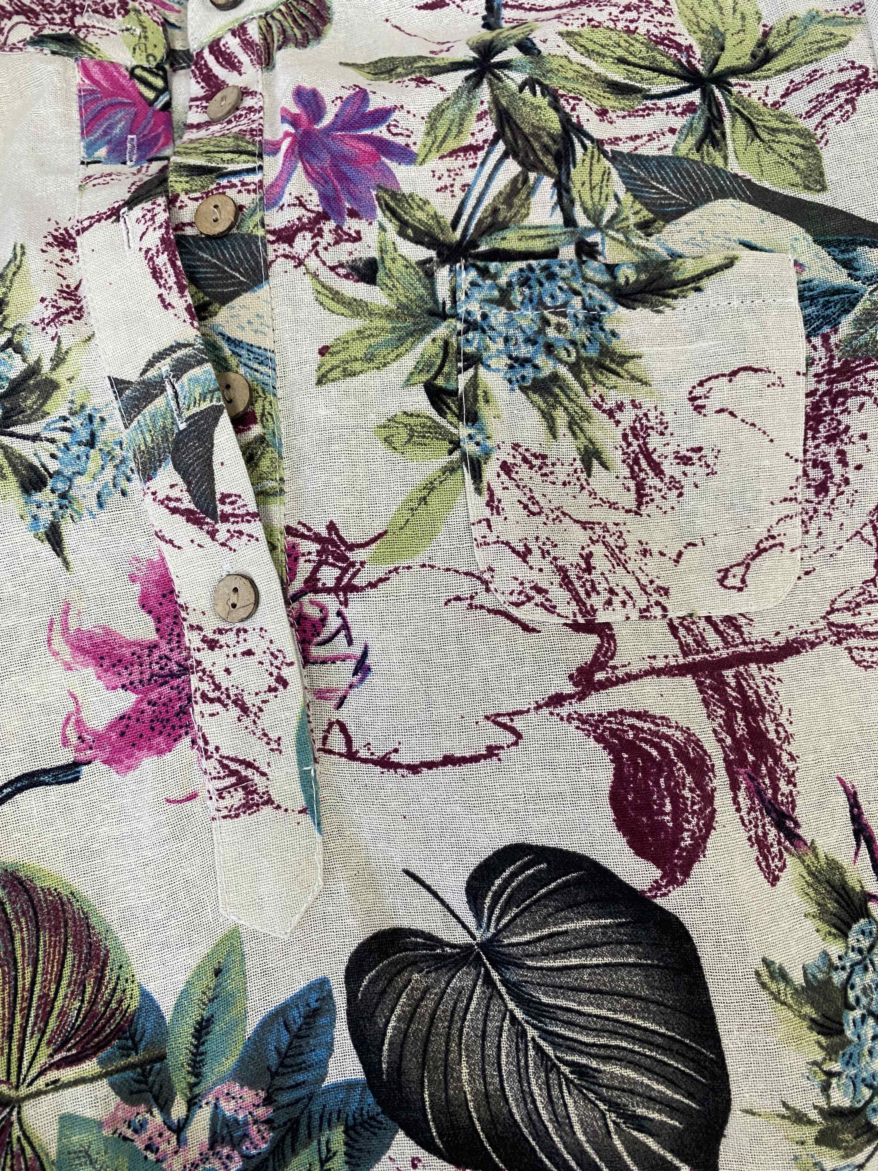 Plus Size Casual Blouse, Women's Plus Tropical Print Long Sleeve Button Up Stand Collar Tunic Shirt Top