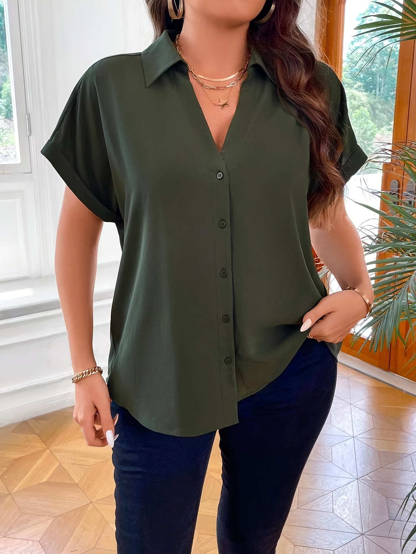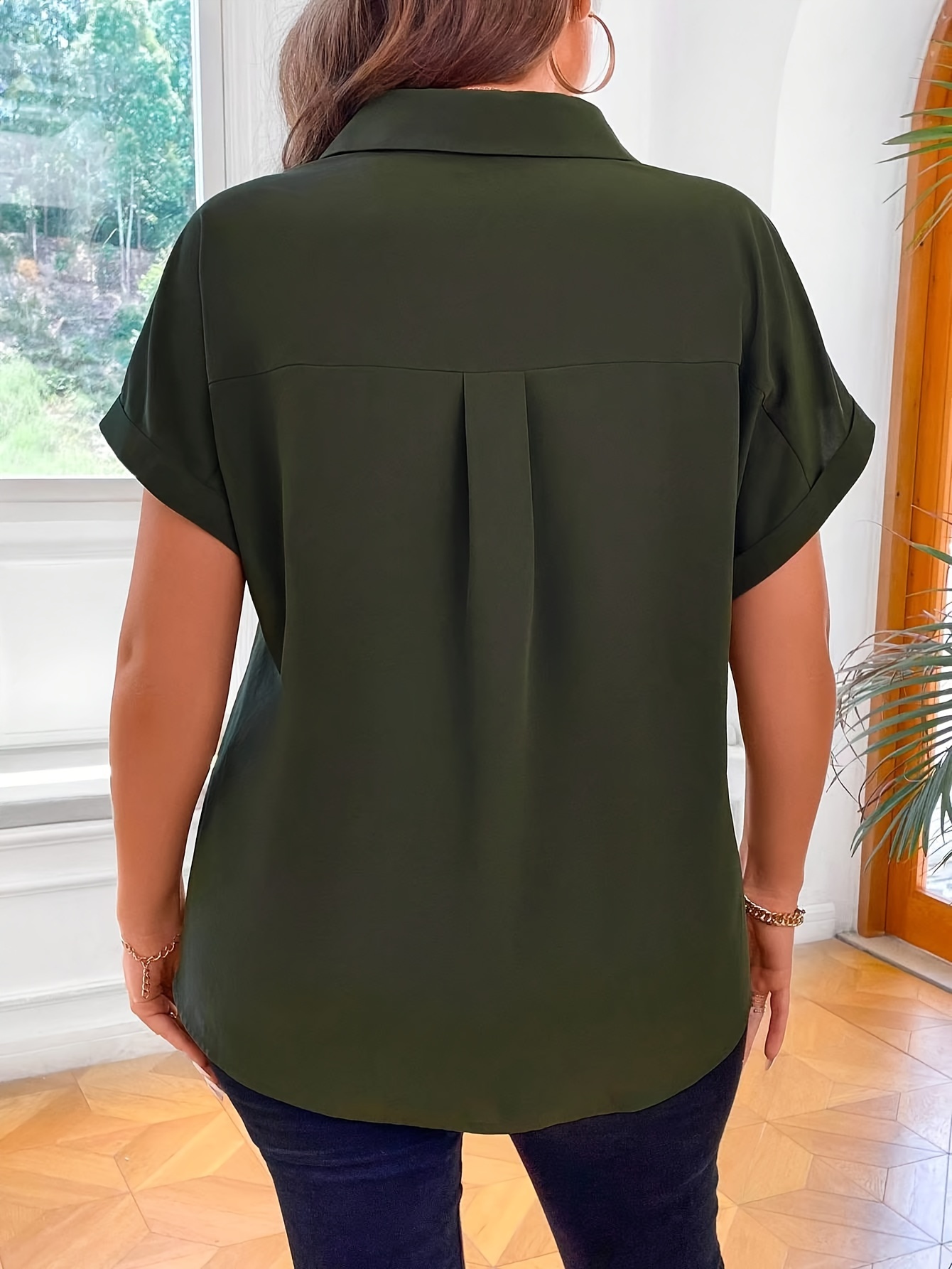 All-Season Elegant Plus Size Women's Blouse with Bat Sleeves | Easy-Care, Versatile Style