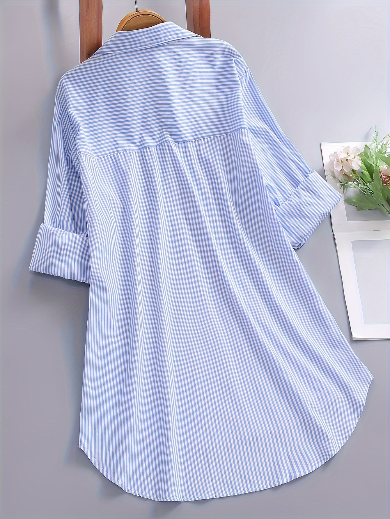 Chic Plus Size Nautical Stripe Blouse - Stylish Button Up Long Sleeve Top with Turn Down Collar - Comfortable & Versatile Casual Wear for Women