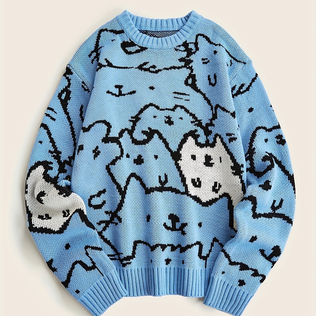 Cute Cats Pattern Knitted Sweater for Men - Casual, Warm, Stretchy Pullover for Fall/Winter