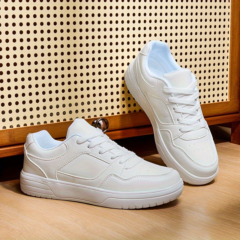 Men's Solid Trendy Skateboard Shoes Non Slip Lace Up For Outdoor Casual Activities Walking Hiking All Seasons Comfy